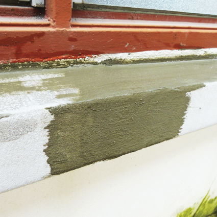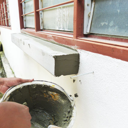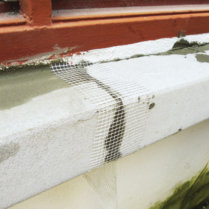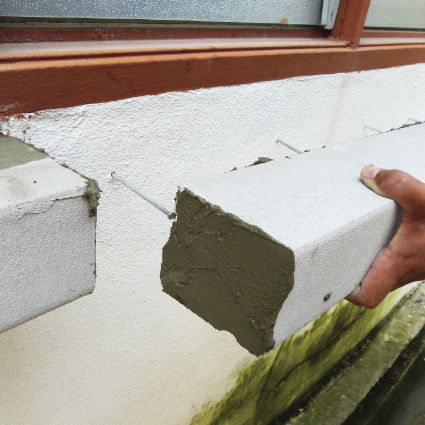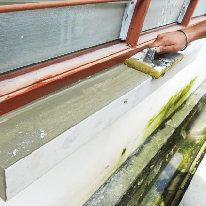 Cover up the fiberglass mesh by applying EPS bond and infill all the gap. Trim all the mixture infill on the gap by using sponge towel or brush.